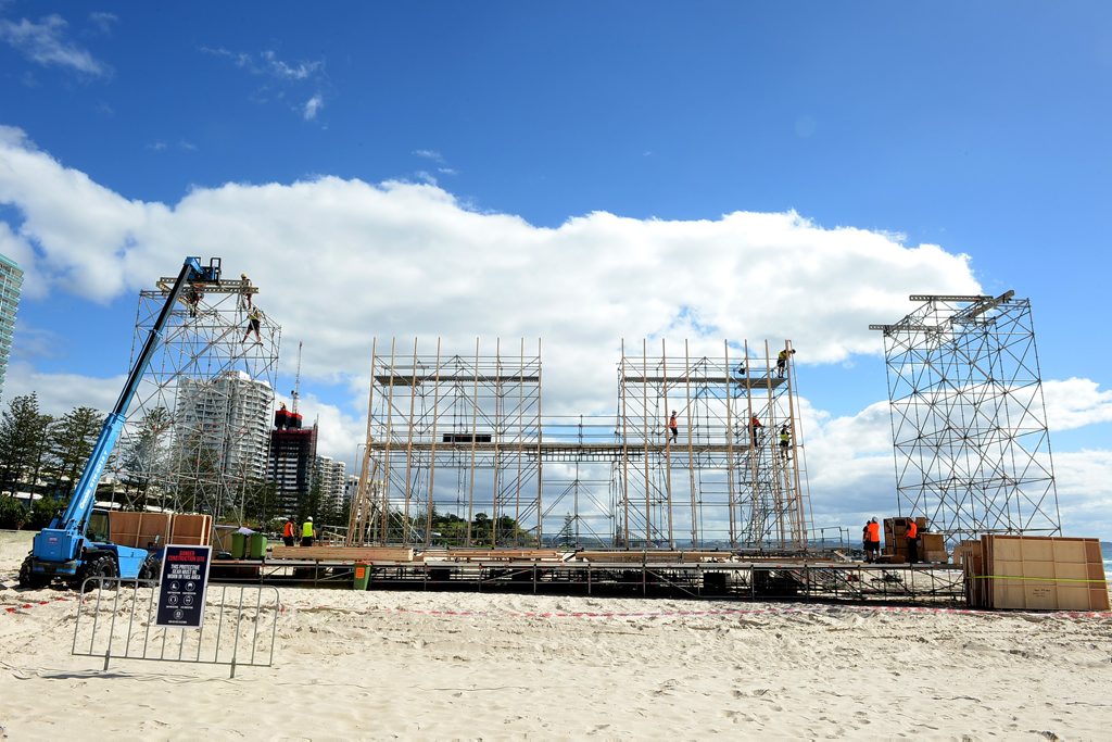Beach stage goes up at Coolangatta ready for opera
