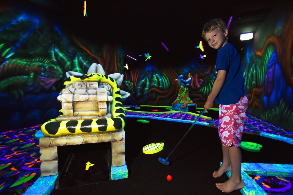 The new attractions include a glow-in-the-dark nine-hole mini-golf course with a rainforest theme and the Balladium Ball Blaster where foam balls shoot across the room from a cannon.