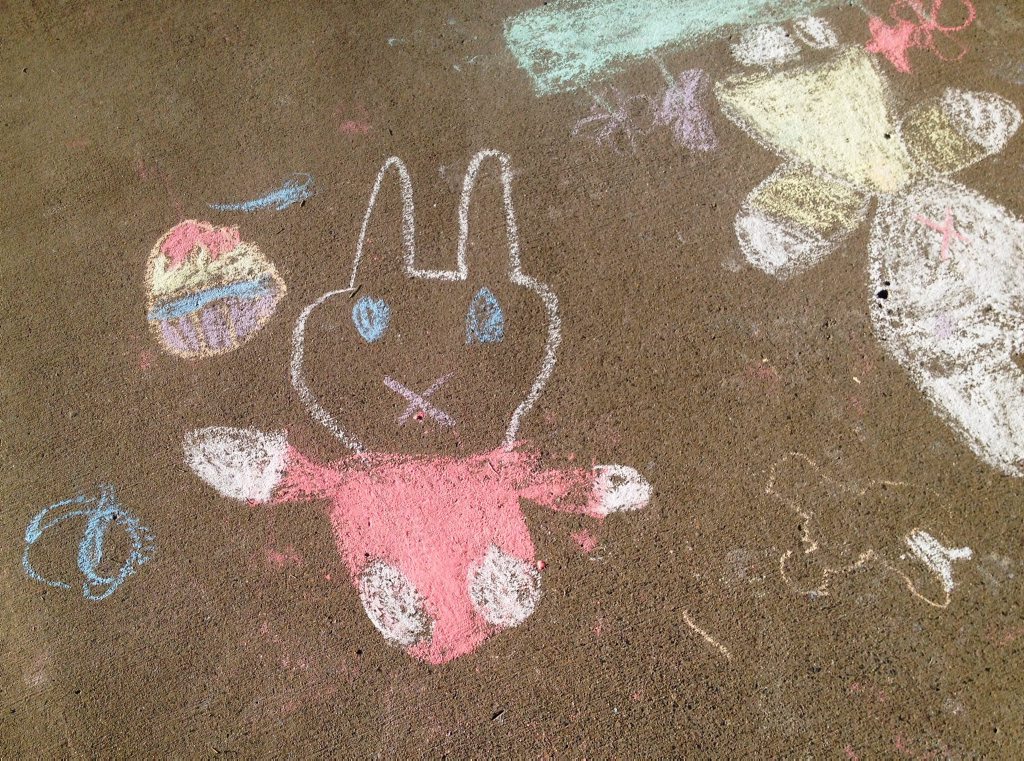 Kids around the southern Gold Coast have been taking to public footpaths with chalk to create Easter drawings.