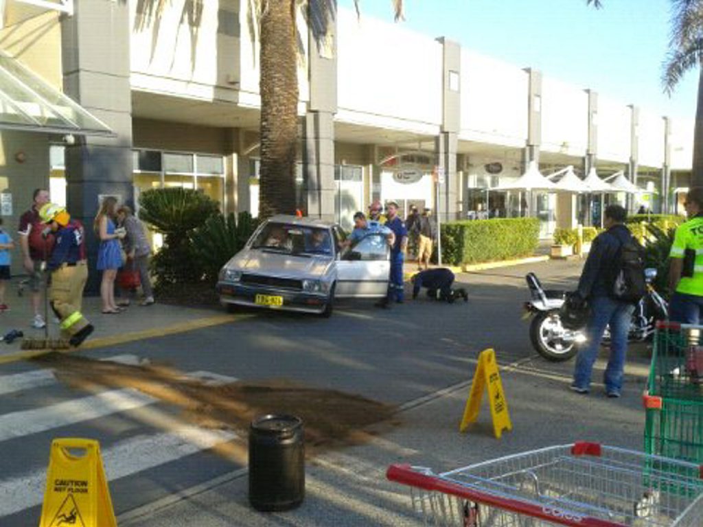 A CAR car driven by an elderly man crashed into a motorbike at the front of Centro Tweed this afternoon.