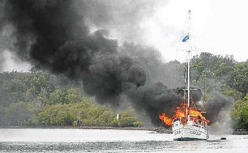 After firefighters extinguished the blaze, NSW Maritime towed the yacht to shallow water in the river before it went down.