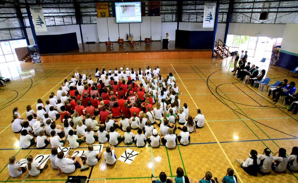 The 31 students joined other students studying Japanese from local schools to form a human version of the Japanese flag and to send their thoughts to victims of the Tohoku earthquake and tsunami that caused devastation on March 11, 2011.