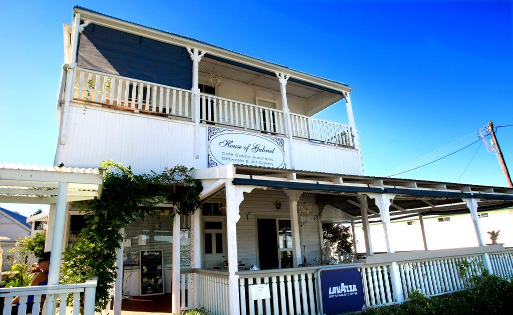 The House of Gabriel is a two-storey original weather board building comprising four-bedrooms plus a lounge upstairs and the commercial cafe kitchen and fashion store occupying the ground floor the art gallery in a separate building on the property.