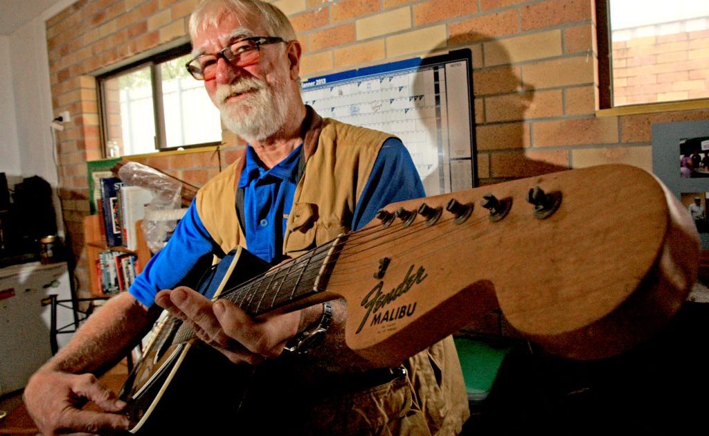 Murwillumbah's Michael Newell has reason to smirk as he strums on the 1963 classic axe once owned by 'the man in black.'