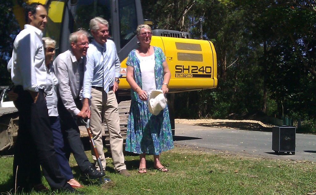 Today a group gathered at the end of Sunshine Ave to turn the symbolic first sod and when completed in 2013, traffic should be able to flow freely from and to the Pacific Hwy on the southern side of Terranora Creek.
