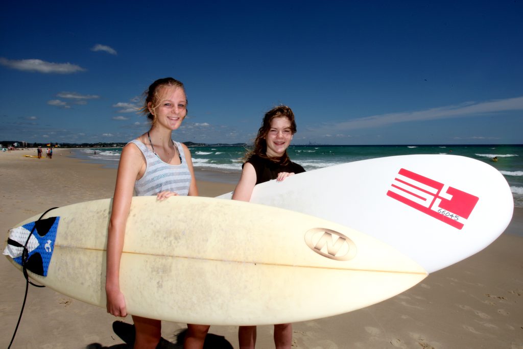 Bree Garland and Courtney Myers are novices in the surfing game.
