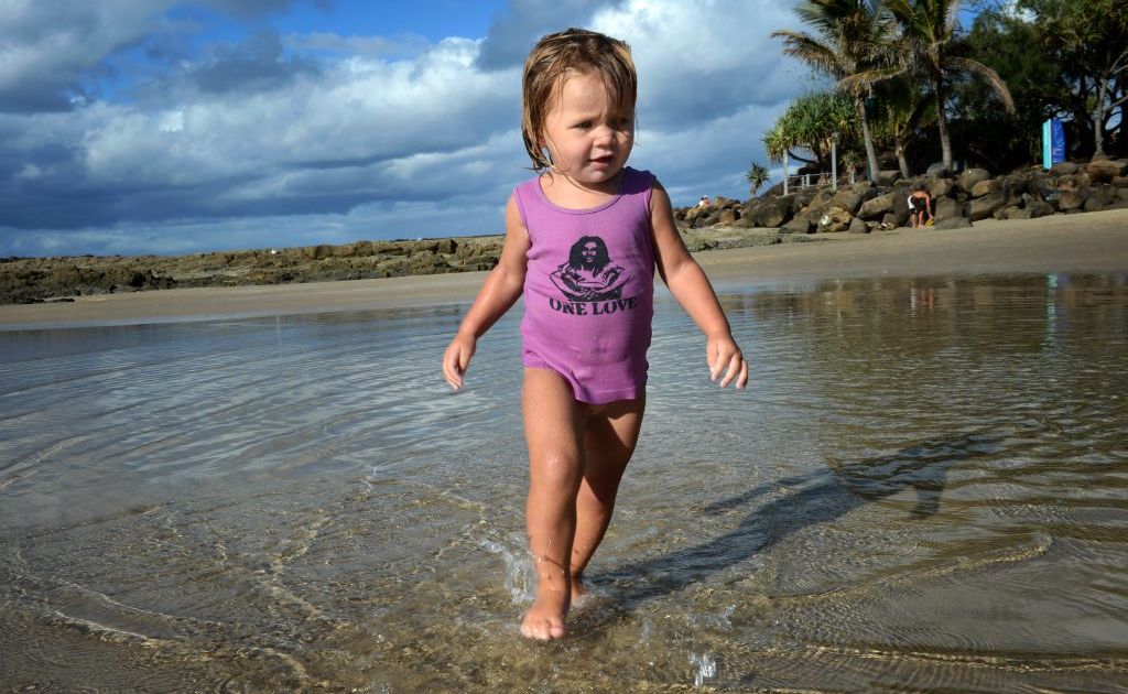 15 month old Malia Longbottom enjoyed a run and splash in the water at Snapper Rocks today.