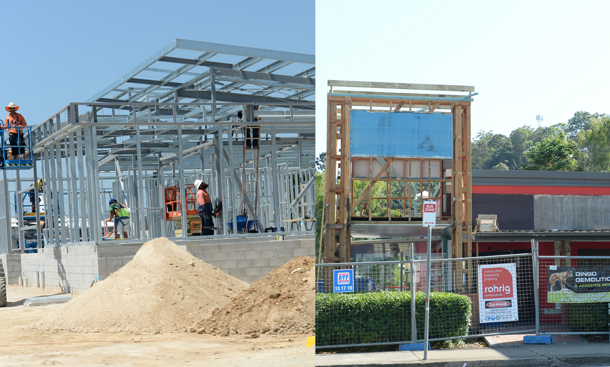 Steel frames for the structure were already standing on the busy building site which was buzzing with delivery trucks and trades people bolting, hammering and welding objects on site.