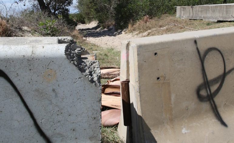 CEMENT barriers have been placed on trails at Letitia Spit in Fingal Head in the latest effort to stop vehicles accessing the beach.