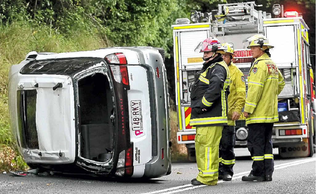 The car turned on its side when the driver lost control between 3.45pm and 4pm DST.