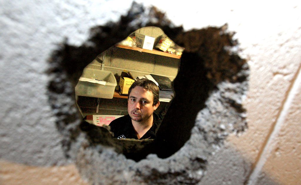 Mr Reading used a screwdriver and a claw hammer to chisel an orange-sized hole in the wall of the strongroom.