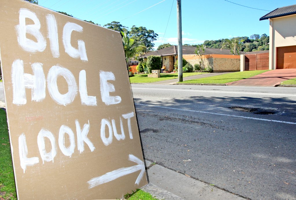 CLEARLY concerned for the driving public, a Tweed Heads resident on Ducat Street has put up a large sign warning motorists about a large pothole.