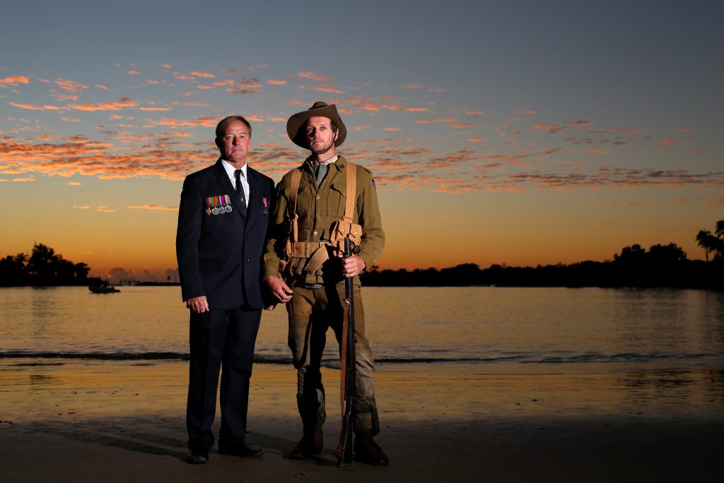 Queenslander Doug Goetze was among those who attended the Dawn Service at Tweed Heads, proudly wearing his medals alongside his grandfather's from the First World War.