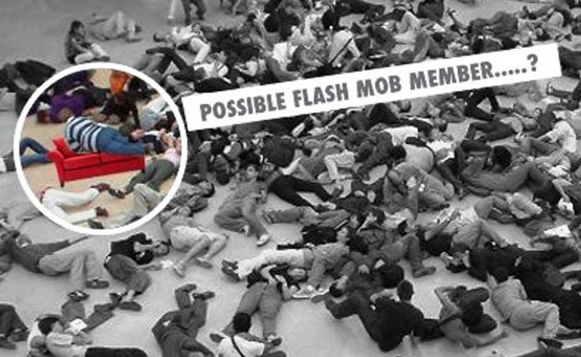 An unidentified airport's security camera system even captured it (pictured) as part of a flash mob.